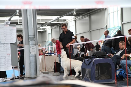 Augsburg: heute könnten wir „Deutscher Champion (VDH)“ werden – nochmal volle Konzentration und Test der Leckerchen.